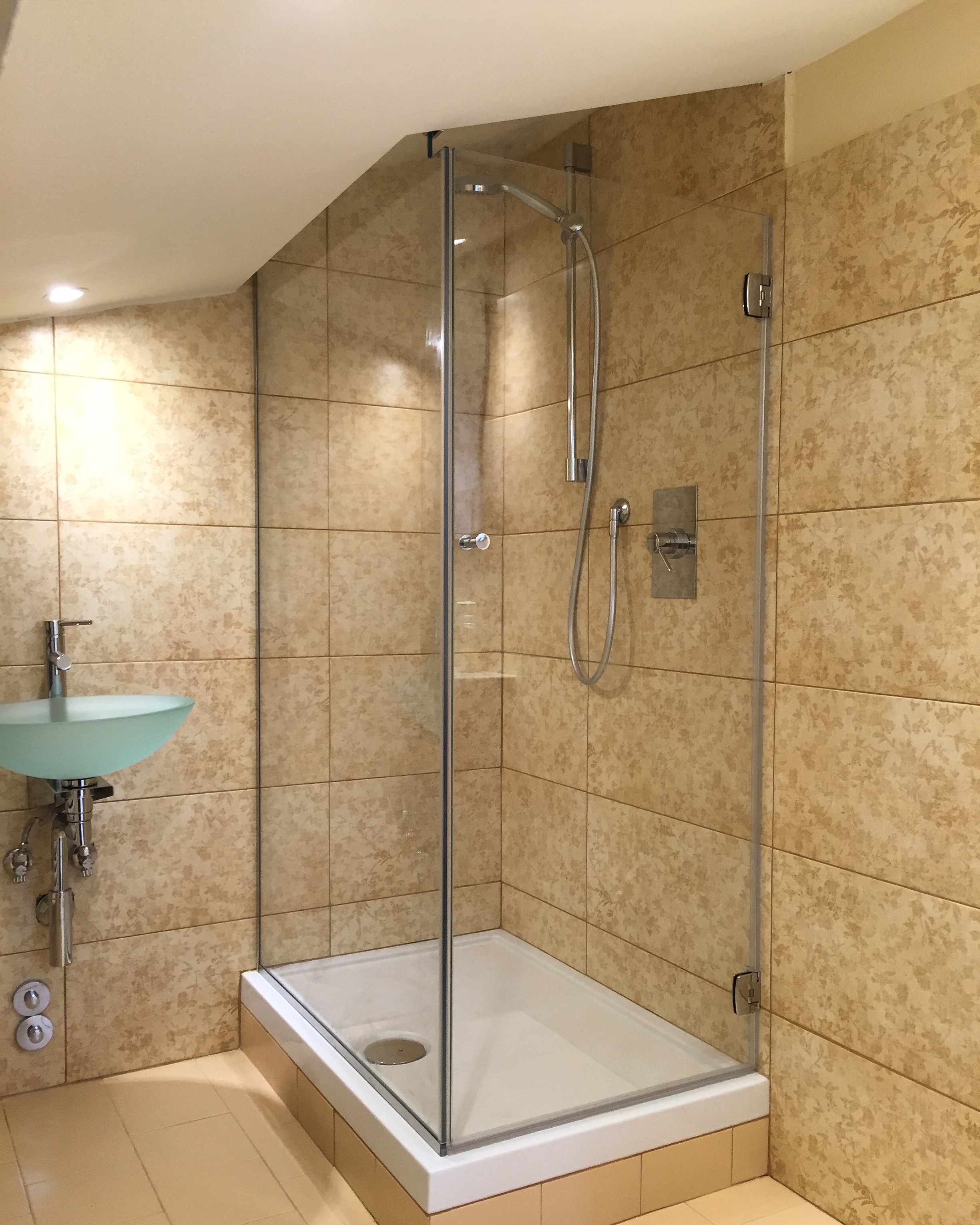 Terza questione sono le cerniere e gli accessori. Leghe a bassa qualità? Cromature improponibili? No grazie, da noi troverete cerniere e pomelli in ottone cromato, e canaline in acciaio trattate in modo specifico per resistere nel tempo all’acqua.